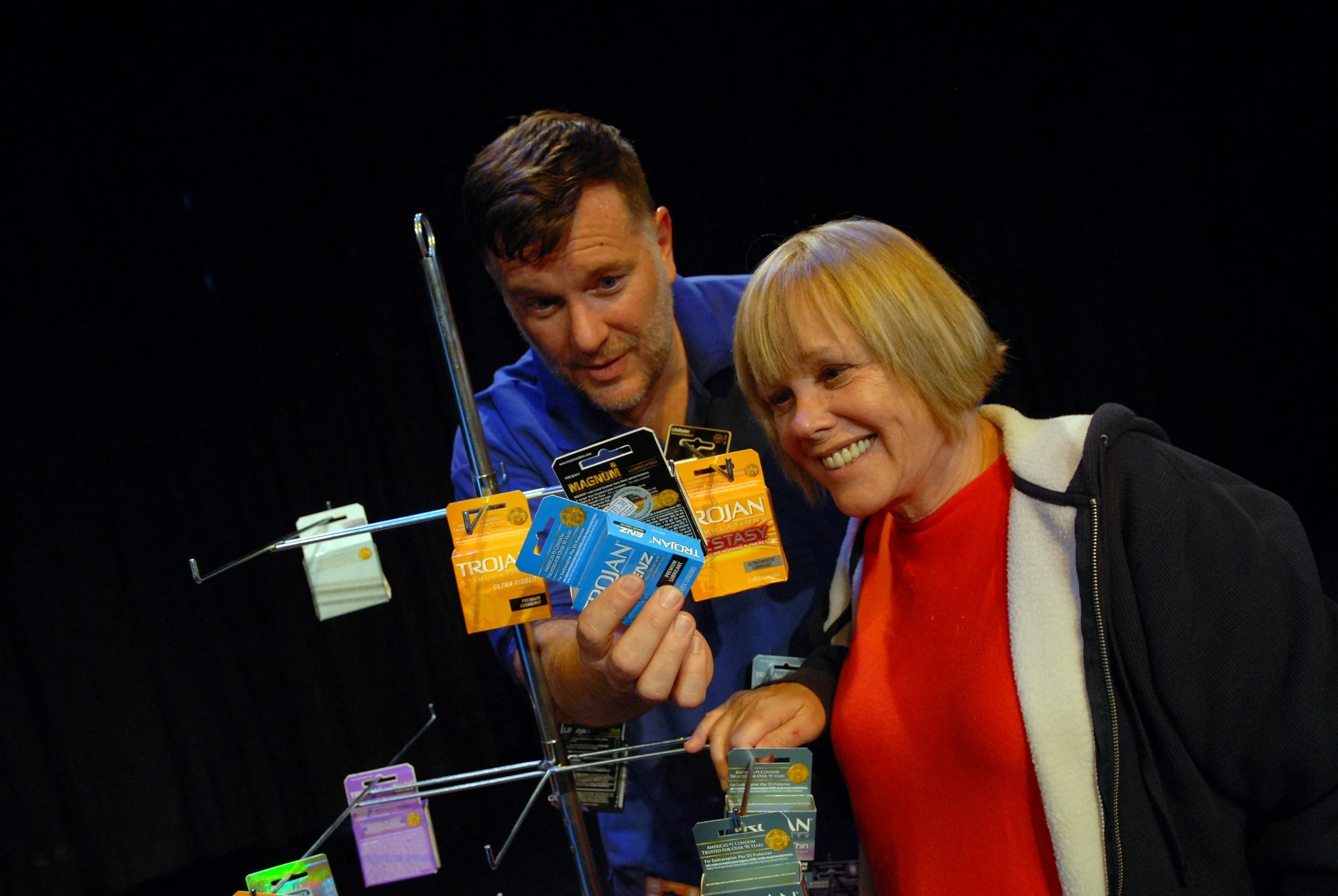 Jim Dalglish and Lynda Sturner acting in their award-winning play “Superlubricated” at the International Dublin Gay Theatre Festival.